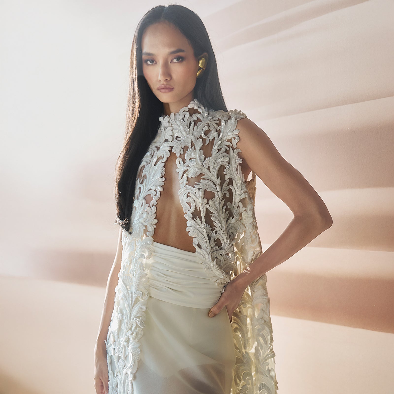 SNOWING HAND-EMBELLISHED TUBE DRESS